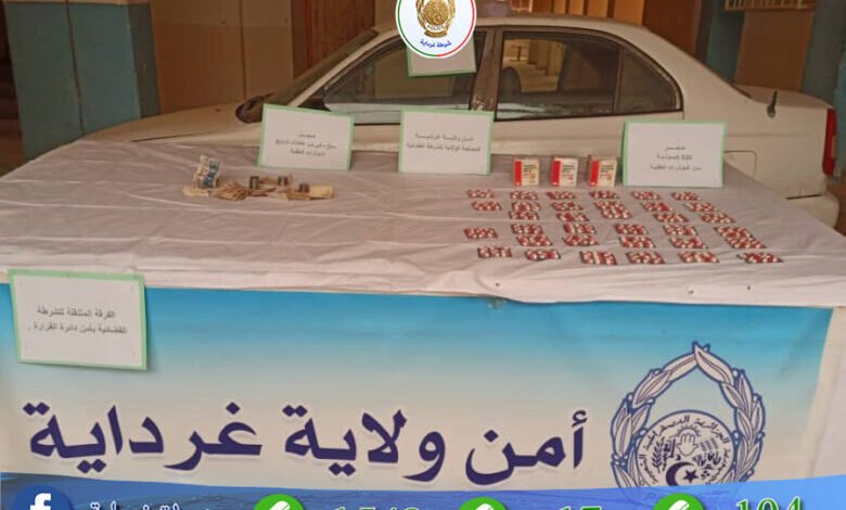 نتائج العملية جاءت إثر استغلال لمعلومات حول تواجد شخصين بصدد نقل كمية من المؤثرات العقلية على متن مركبة لترويجها بين أوساط الشباب، التحريات الحثيثة لعناصر الفرقة المتنقلة للشرطة القضائية مكنت من ضبط و توقيف المركبة وسط مدينة القرارة، بعد التفتيش الدقيق للمركبة عثر بداخلها كمية من المؤثرات العقلية مقدرة بـ 510 قرص من نوع Bregabaline 300 mg بالإضافة إلى مبلغ مالي من عائدات ترويج هذه المواد بما يقارب 15 ألف دج ، على الفور قامت قوات الشرطة بتحويل المشتبه فيهما إلى مقر المصلحة لمواصلة التحقيق.