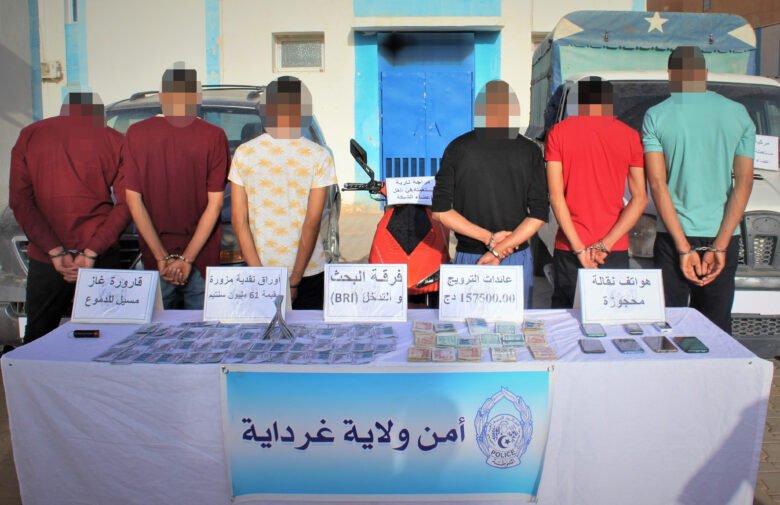 تمكنت فرقة البحث و التدخل التابعة للمصلحة الولائية للشرطة القضائية بغرداية من الإطاحة بشبكة إجرامية تعمل على تقليد وتزوير وتزييف أوراق نقدية من العملة الوطنية ذات سعر قانوني لغرض طرحها للتداول بصفة غير قانونية، أين تم حجز أوراق نقدية مزورة، عائدات ترويج و مقابل تداول هذه الأوراق، مركبتين و دراجة نارية، مع توقيف ستة (06) أشخاص تتراوح أعمارهم بين 24 و 37 سنة قدموا أمام الجهات القضائية.