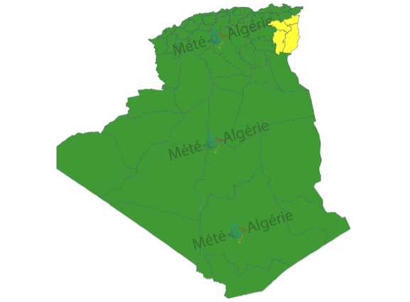 وحسب تنبيه باللون الأصفر نشره الديوان، فإن الولايات المعنية هي: سوق اهراس، أم البواقي، تبسة وخنشلة.