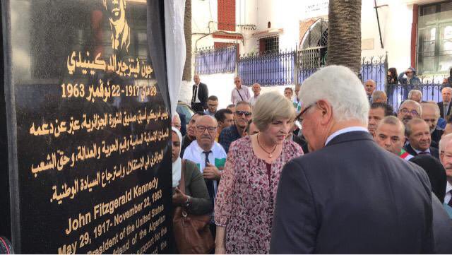 شاركت سفيرة الولايات المتحدة بالجزائر إليزابيث أوبين اليوم السبت، في تدشين لوحة تذكارية تخلّد ذكرى الرئيس الأمريكي الراحل جون كينيدي، باعتباره صديقا للثورة الجزائرية.