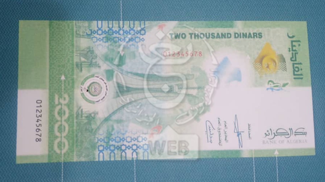 الورقة النقدية الجديدة الأولى –حسب الجريدة الرسمية- ستكون تذكارية بمناسبة انعقاد القمة العربية بالجزائر، ستكون فئة ألفي دينار تحمل على جانبها صورة الأمير عبد القادر، وعلى وجهها صورة مقام الشهيد وخريطة العالم العربي وخريطة الجزائر.