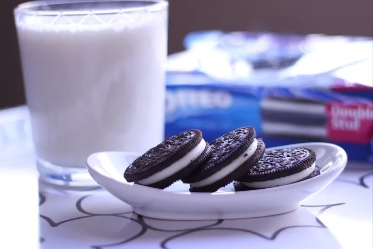 رغم ذلك فلن تجد اللبن ضمن قائمة المكونات الموجودة على غلاف أوريو، إذ من الممكن أن يحتوي عليه، لأنه فقط “يلامسه” أو يستخدم بكمية مجهرية، بحسب وصف الشركة، وهو إما أن هناك كمية قليلة جدًا من اللبن قد لامست المكونات، وإما لامست الأدوات المستخدمة لصنعه.