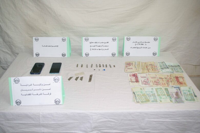 تفاصيل مختلف القضايا التي عولجت من قبل مختلف مصالح الشرطة، تمثلت في قيام عناصر أمن دائرة بريان، إثر عملية أمنية بحر الأسبوع المنصرم من توقيف شخصين مشتبه فيهما، عن قضية حيازة مخدرات لغرض البيع، مع حجز كمية من المخدرات تقدر بـمجموع 14.14 غرام (كيف معالج)، مبلغ مالي يقدر بـ 179500 دج من عائدات البيع، هاتفين نقالين، ليتم تحويلهما رفقة المحجوزات لذات المصالح بغية مواصلة الإجراءات القانونية بالتنسيق الدائم والمستمر مع الجهات القضائية المختصة.