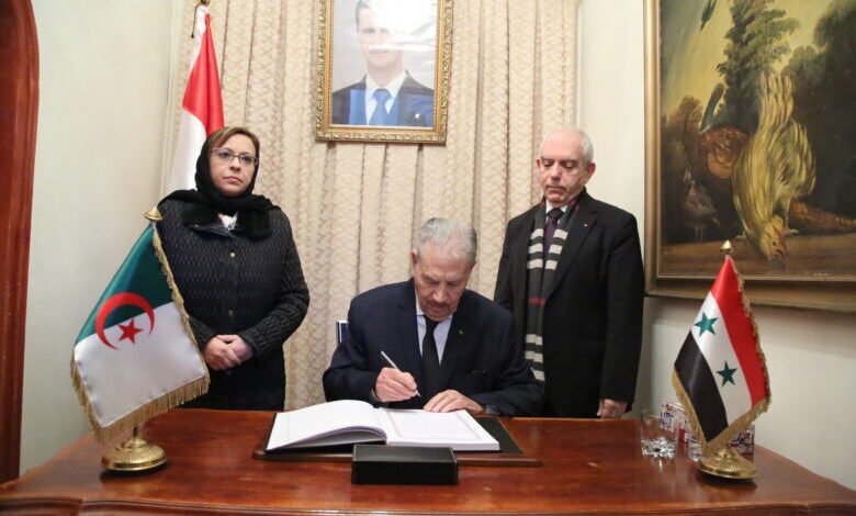 وكان رئيس مجلس الأمة مرفوقا بوزيرة التضامن الوطني والأسرة وقضايا المرأة، السيدة كوثر كريكو، وجاء في نص التعزية: “على إثر المصاب الجلل الذي ألم بالشعب السوري الشقيق, جراء الزلزال العنيف الذي ضرب صباح يوم الاثنين الماضي عددًا من المدن بالجمهورية العربية السورية, أتقدم، باسم رئيس الجمهورية الجزائرية الديمقراطية الشعبية, عبد المجيد تبون، إلى الجمهورية العربية السورية الشقيقة، قيادة وحكومة وشعبا, وإلى عائلات الضحايا, بأصدق عبارات التعازي وأخلص مشاعر التضامن والمواساة, راجيا من الله العلي القدير أن يتغمد أرواح الضحايا برحمته الواسعة ويكلل جهود كل العاملين في مجال الإسعاف والإغاثة بالتوفيق”.