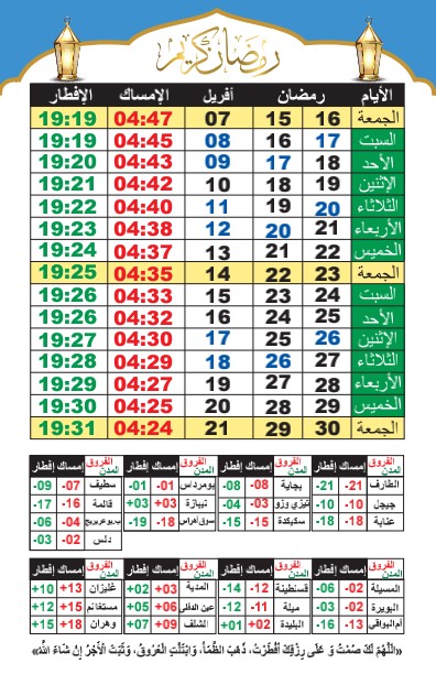 هذه مواقيت الإمساك والإفطار لجميع ولايات الجزائر