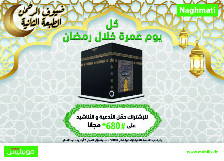 أطلق متعامل الهاتف النقال الوطني “موبيليس” الطبعة الثانية من مسابقته “ضيوف الرحمان” وهي مسابقة تمكن زبائنه طيلة شهر رمضان من فرصة الفوز بـ 30 عمرة.