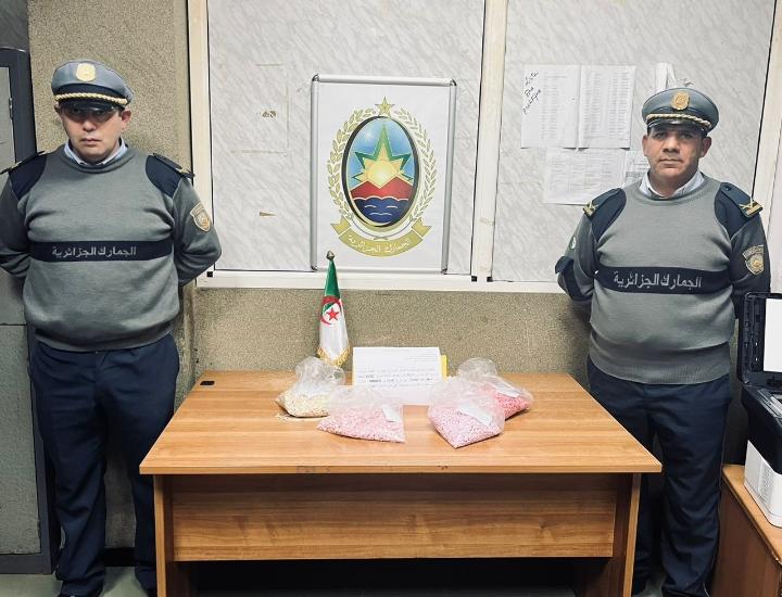تمكن أعوان المفتشية الرئيسية لفحص المسافرين بالمحطة البحرية لميناء الجزائر، التابعة لمصالح مفتشية الأقسام للجمارك بالجزائر أنظمة- خاصة، بإقليم اختصاص المديرية الجهوية للجمارك بالجزائر-ميناء، من حجز 10050 قرصا مهلوسا من نوع إكستازي، تم ضبطها بحوزة أحد المسافرين على إثر معالجة إحدى الرحلات البحرية القادمة من مرسيليا.