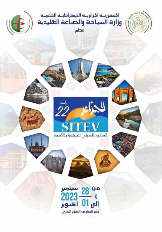 وأفاد بيان للوزارة ذاتها اليوم الاثنين، أنّ الصالون الدولي للسياحة سيمتد من 28 سبتمبر إلى 1 أكتوبر 2023 بقصر المعارض، بالجناح المركزي في الصنوبر البحري بالجزائر العاصمة، وأضاف البيان أنّ هذه الطبعة ستعرف مشاركة مختلف الفاعلين والشركاء في قطاع السياحة والصناعة التقليدية لاسيما المؤسسات تحت الوصاية، وكالات السياحة والأسفار، متعاملين سياحيين، مؤسسات فندقية عمومية وخاصة، حرفيين، مؤسسات خدماتية كالبنوك والتأمينات والنقل.