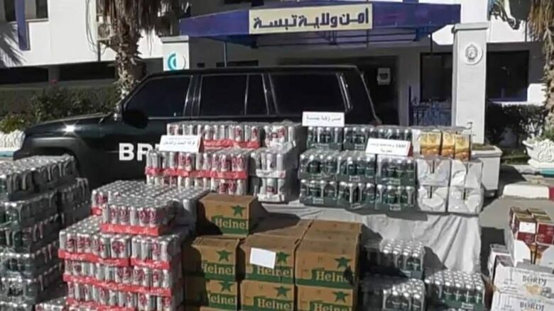 تمكن عناصر الشرطة بفرقة البحث والتدخل بالمصلحة الولائية للشرطة القضائية بولاية تبسة وهذا بعد استغلال معلومات واردة من شلّ نشاط أربعة اشخاص يقومون بتهريب  و تخزين لغرض العرض للبيع للمشروبات الكحولية دون رخصة داخل نطاق جمركي.