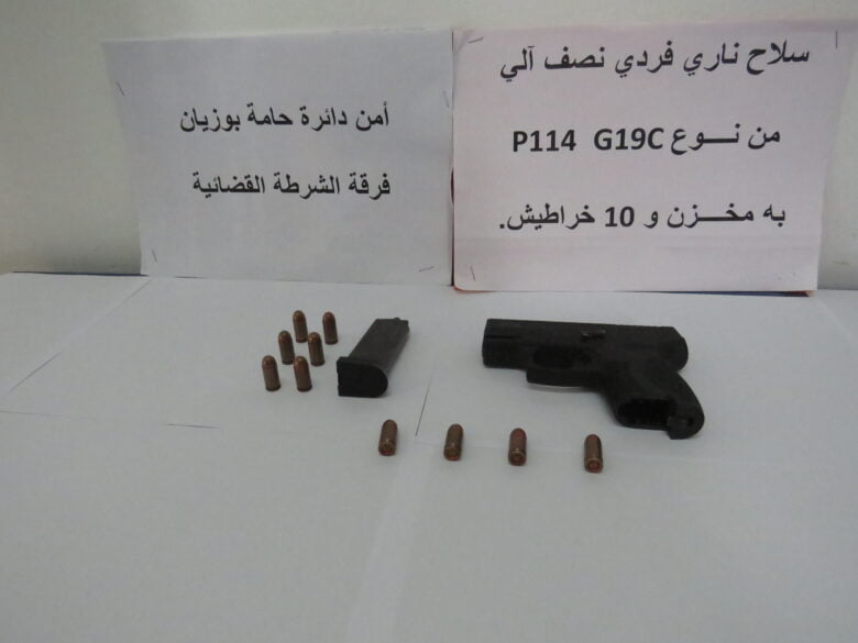 كما تم العثور عرضيا على سلاح ناري فردي مزود بمخزن به 10 خراطيش عيار 09 ملم ، مباشرة تم توقيفه وتحويله رفقة المضبوطات لمقر المصلحة لاستكمال الإجراءات القانونية اللازمة .