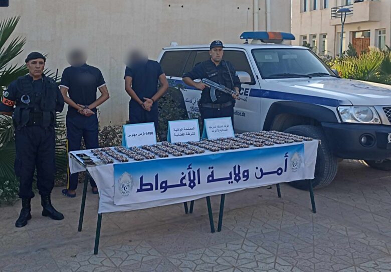 تمكن عناصر الفرقة المتنقلة للشرطة القضائية بأمن ولاية الأغواط، بحر الأسبوع الجاري، من توقيف شخصين في العقد الرابع من عمرهما، لتورطهما في حيازة 6480 قرص مهلوس.
