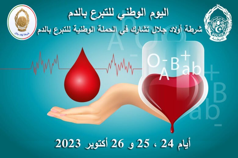 أطلقت مصالح الشرطة بأمن ولاية أولاد جلال حملة واسعة للتبرع بالدم بين صفوف منتسبيها، ابتداء من يوم الثلاثاء 24 أكتوبر 2023 على أن تدوم لمدة 03 أيام، وهذا بالتنسيق مع المخبر المتخصص على مستوى المؤسسة العمومية للصحة الجوارية، عبر تسخير الإمكانيات اللازمة مع نصب خيمة أمام مقر أمن الولاية لاستغلالها في العملية.