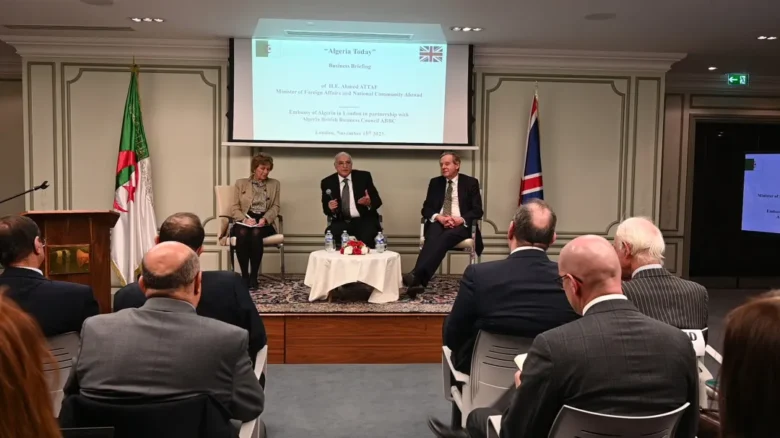 وأفاد بيان للوزارة أن الوزير عطاف قدم عرضا حول مقومات الاستثمار في الجزائر وأهم محاور السياسة الاقتصادية في مجال تحفيز وجذب الاستثمارات الأجنبية وذلك بحضور اللورد ريتشارد ريسبي, المبعوث الخاص لرئيس الوزراء البريطاني المكلف بتعزيز الشراكة الاقتصادية مع الجزائر.