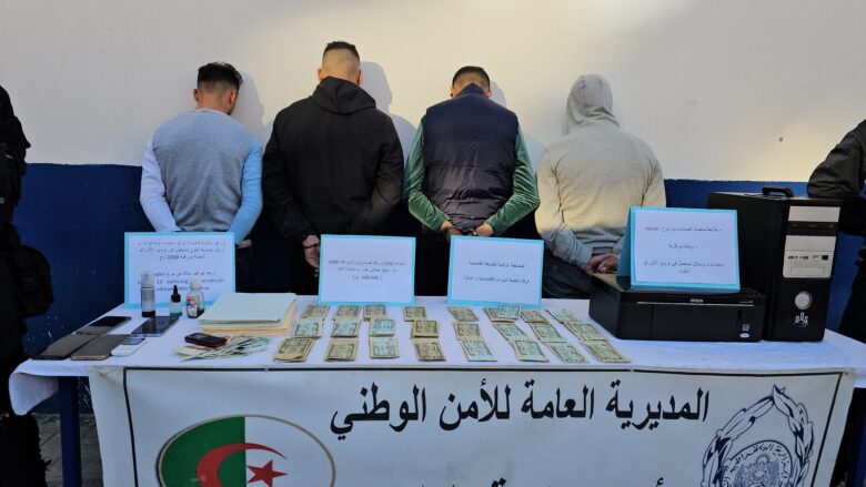 حيث أسفرت العملية عن توقيف أربعة أشخاص مشتبه فيهم مع ضبط و حجز مبلغ مالي مزور من العملة الوطنية قدر بـ 60 مليون سنتيم، أجهزة إعلام آلي و كمية من الورق الخاص متعدد الألوان  وقارورات حبر كانت تستعمل في عملية التزوير.