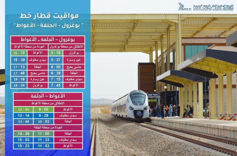 كشفت الشركة الوطنية للنقل بالسكك الحديدية، اليوم الثلاثاء، عن مواقيت سير القطار على خط بوغزول – الجلفة – الأغواط.
