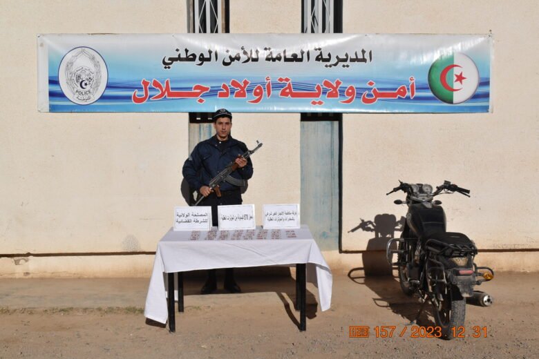 على إثر عملية شرطية ناجحة قام بها عناصر فرقة مكافحة الاتجار غير الشرعي بالمخدرات لشرطة أولاد جلال تمكن عناصر الأمن  من حجز 570 كبسولة من المؤثرات العقلية  كانت مهيأة لغرض الترويج مع توقيف شخصين وحجز دراجة نارية  .