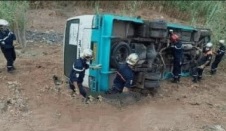 وأفاد بيان لمصالح الحماية المدنية، أن وحداتها تدخلت على الساعة 09:56 سا من صباح اليوم من أجل حادث اصطدام بين حافلة صغيرة لنقل المسافرين وسيارة، على مستوى الطريق الوطني رقم 5 بالمكان المسمى زيرية بلدية ودائرة قادرية.