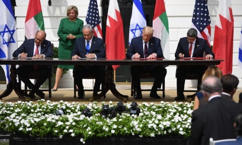 بالتزامن مع مراسم توقيع اتفاقات التطبيع بين كل من البحرين والإمارات مع إسرائيل في العاصمة الأميركية واشنطن، مساء الثلاثاء، خرج الفلسطينيون في الضفة الغربية وأراضي الداخل الفلسطيني في تظاهرات غضب عبروا فيها عن رفضهم للتطبيع بين كل من البحرين والإمارات مع إسرائيل.