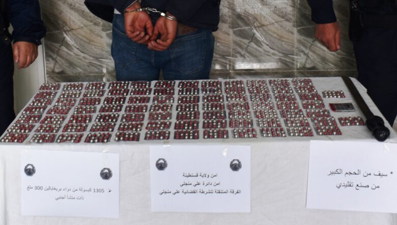 حيثيات القضية تعود حسب ما أفاد به بيان صدر اليوم عن خلية الاتصال والعلاقات العامة تلقت المنصة الإخبارية عاجل نيوز نسخة منه، لاستغلال معلومات مستقاة من قبل عناصر الشرطة بذات المصلحة ، مفادها قيام شخص مشبوه بترويج المؤثرات العقلية على مستوى الوحدة الجوارية 19 علي منجلي بالقرب من مقر سكناه ، بناء على ذلك تم تكثيف العمل الاستعلاماتي الذي مكن من تحديد هوية ومكان تواجد المشتبه فيه ، وبإذن صادر من الجهات القانونية المختصة الناص بتفتيش مسكنه العائلي ، تم التنقل إلى عين المكان ، حيث أثمرت عملية التفتيش عن حجز كمية معتبرة من المؤثرات العقلية لدواء بريغابالين قدرت ب 1305 كبسولة كان يخفيها بغرفة نومه ، بالإضافة إلى سلاح أبيض من الحجم الكبير تقليدي الصنع ، مباشرة تم توقيفه وتحويله لمقر المصلحة لاستكمال الإجراءات القانونية اللازمة.