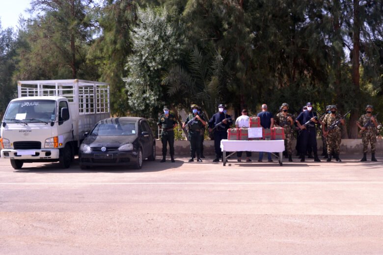 وفي إطار محاربة التهريب والجريمة المنظمة و”مواصلة للجهود الحثيثة الهادفة لصد ظاهرة الاتجار بالمخدرات ببلادنا، أوقفت مفارز مشتركة للجيش الوطني الشعبي بالتنسيق مع مصالح الأمن الوطني، خلال عمليات منفصلة ببشار، (16) تاجر مخدرات وحجزت كميات كبيرة من الكيف المعالج تقدر بثمانية (08) قناطير و(55) كيلوغرام، في حين أوقفت مفرزة أخرى بالتنسيق مع مصالح الدرك الوطني بأم البواقي ثمانية (08) تجار مخدرات بحوزتهم (2,1) كيلوغرام من مادة الكوكايين وكمية أخرى من الكيف المعالج تقدر بـ(13,6) كيلوغرام”.