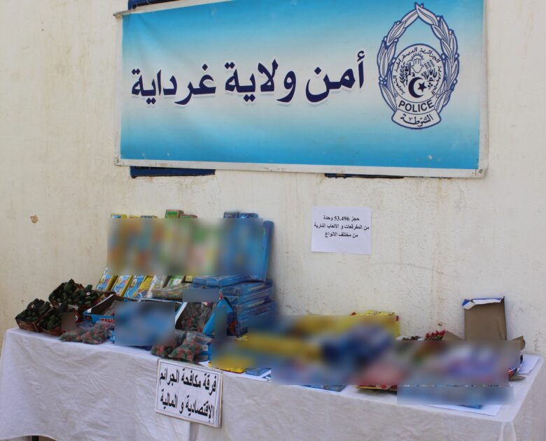 تمكنت مصالح أمن ولاية غرداية بعد تنفيذ عدة عمليات أمنية بإقليم الولاية من حجز كميات متفاوتة من المفرقعات والألعاب النارية قدرت بـ 53496 وحدة من المفرقعات و الألعاب النارية من مختلف الأنواع و الأحجام.