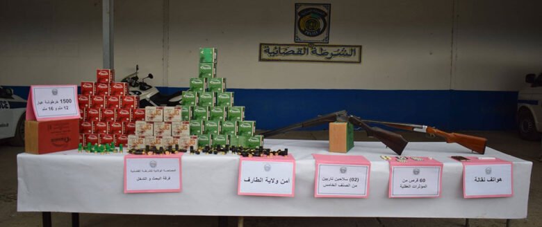 وحسب منشور لذات المصالح عبر موقع الفايسبوك، فإن أمن ولاية الطارف تمكن من الإطاحة بشبكة إجرامية دولية مختصة في الاتجار غير المشروع وتهريب الأسلحة النارية والذخيرة الحية حيث تم حجز (02) سلاحين ناريين و1500 خرطوشة من الصنف الخامس.