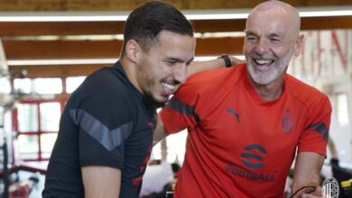 بن ناصر يتابع تدريبات ميلان ويلتقي زملاءه رغم الإصابة