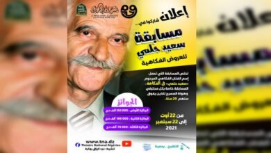 ينظم المسرح الوطني الجزائري “محيي الدين بشطرزي” مسابقة في العروض الفكاهية للمحترفين وهواة المسرح تكريما للكوميدي الراحل سعيد حلمي، أحد أبرز وجوه المسرح والسينما الجزائرية،…